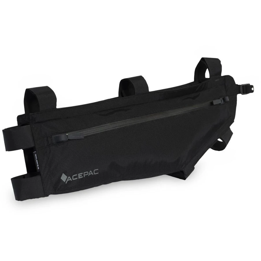 Hoogwaardige bikepacking frametas met een volume van 5 liter gemaakt van gerecycled nylon 6.6 materiaal.