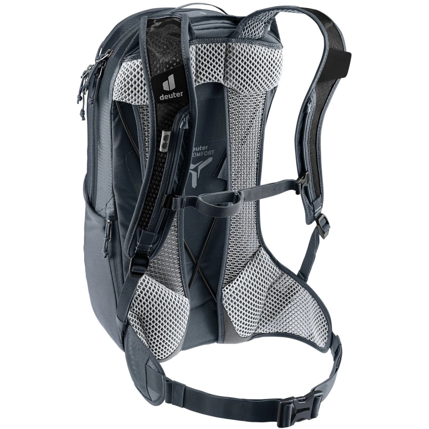 Het beproefde Aircomfort-rugsysteem is speciaal voor fietsers opnieuw ontworpen. Een centraal verdeelde rug van gaas vermindert het contactoppervlak nog verder en creëert meer ruimte voor de wervelkolom, die in de rijpositie gebogen is. Bovendien zorgen de luchtige mesh heupvinnen, geperforeerde schouderbanden en rugvulling voor maximale ventilatie, zelfs tijdens zweterige tochten.