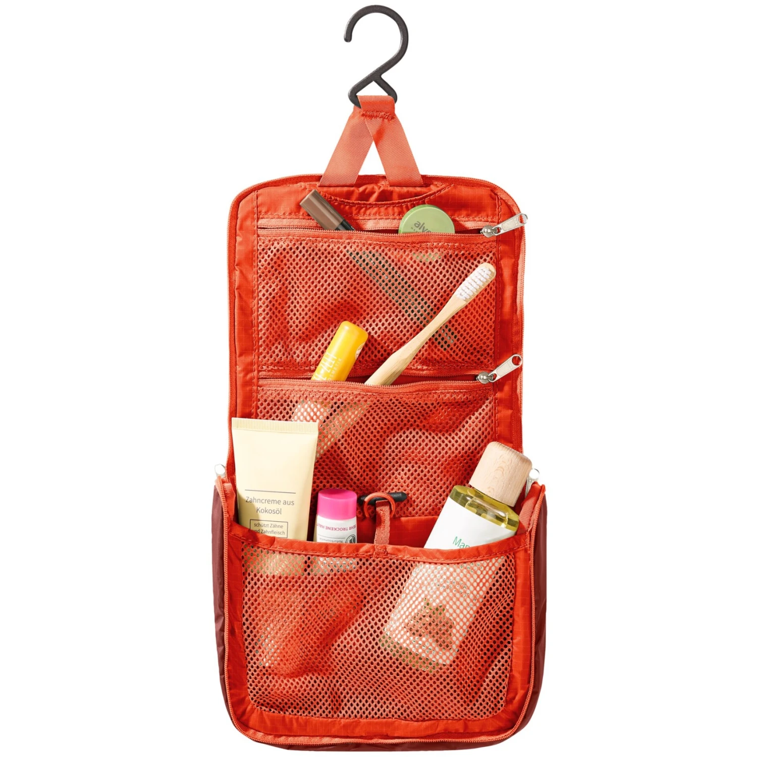 Met een geraffineerd interieur is deze waszak de perfecte metgezel tijdens trektochten.