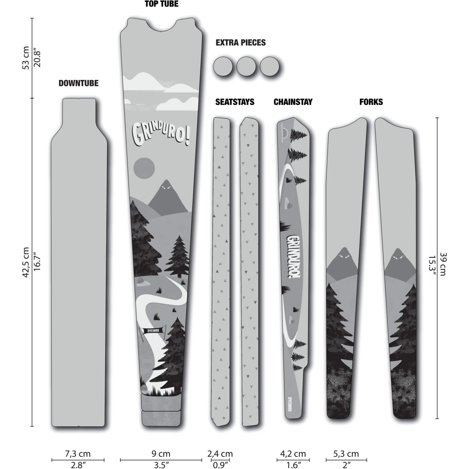 Kenmerken van de DYEDBRO Gravel framebeschermingsset GRINDURO