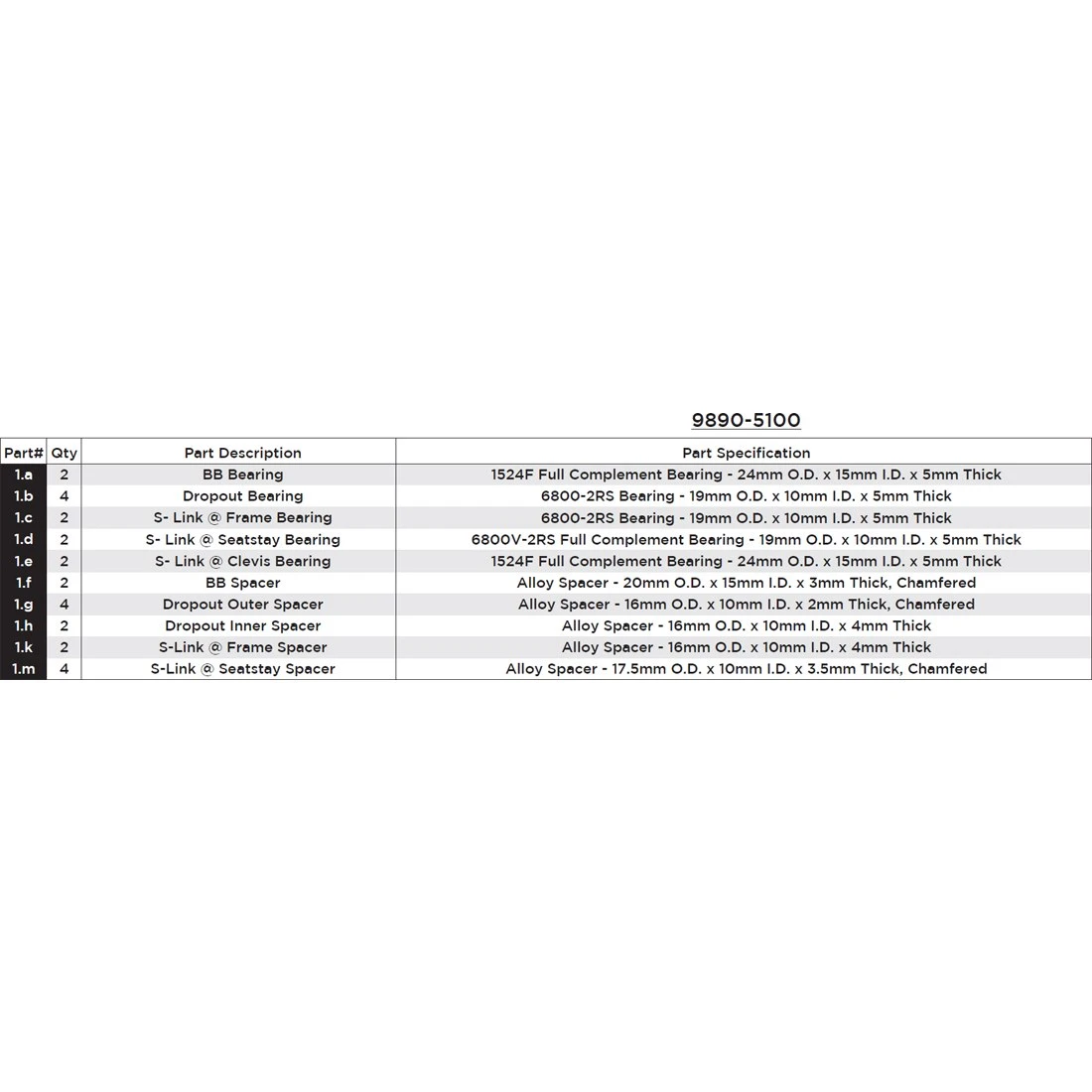 Specialized 9890-5100 Bearing Kit For Stumpjumper FSR 2010